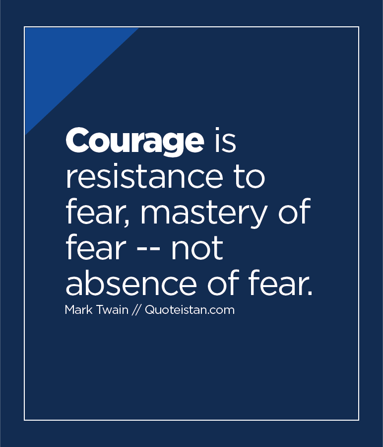 Courage is resistance to fear, mastery of fear - not absence of fear. Martin Twain