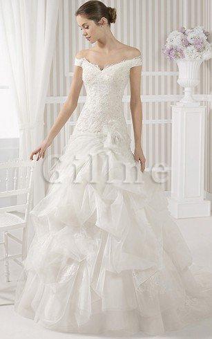 Abito da Sposa con Piega in Tulle Senza Maniche con Bottone con Applique