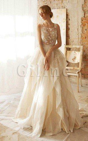 Abito da Sposa in Organza Spazzola Treno Tondo A Line Romantico