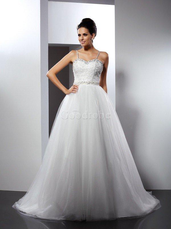 Robe de mariée longue manche nulle textile en tulle avec perle ligne a