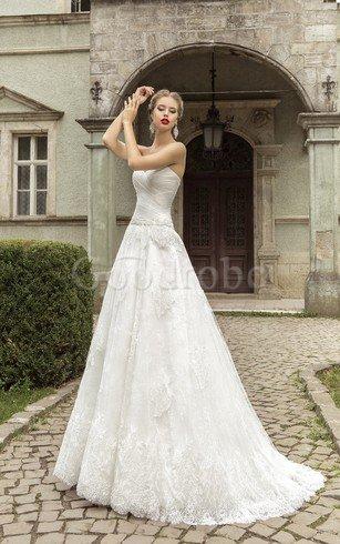 Robe de mariée naturel col en forme de cœur appliques avec sans manches ligne a