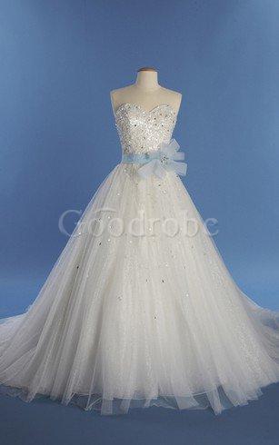 Robe de mariée ligne a en tulle a salle intérieure fermeutre eclair avec perle