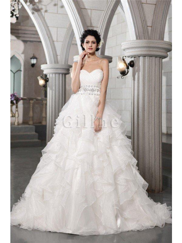 Abito da Sposa in Organza Lungo Cuore con Perline Cerniera