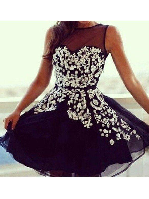 A Linie Schaufel Ausschnitt Tüll Prinzessin Ballkleid mit Applikation