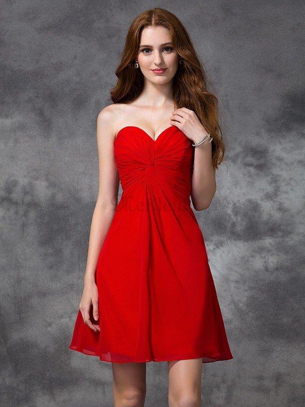 Empire Taille Ärmelloses Gerüschtes Cocktailkleid aus Chiffon mit Herz Ausschnitt