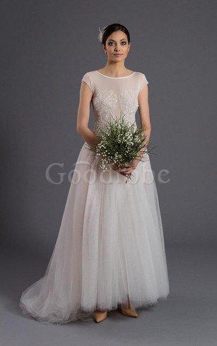 Robe de mariée naturel textile en tulle avec perle avec manche courte jusqu'au sol