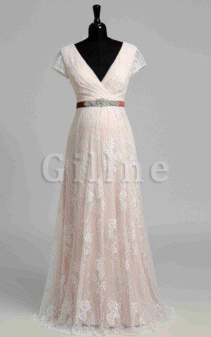 Abito da Sposa Premaman Semplice Cerniera con Perline A Terra