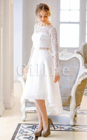 Abito da Sposa in Raso in Pizzo Al Ginocchio Semplice A Line