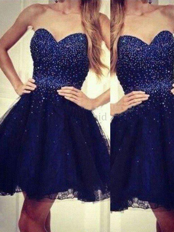 Perlenbesetztes Herz Ausschnitt Rückenfreies Mini Abiballkleid aus Tüll