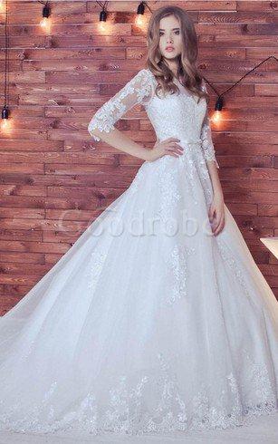 Robe de mariée plissé textile en tulle de mode de bal avec nœud de traîne moyenne