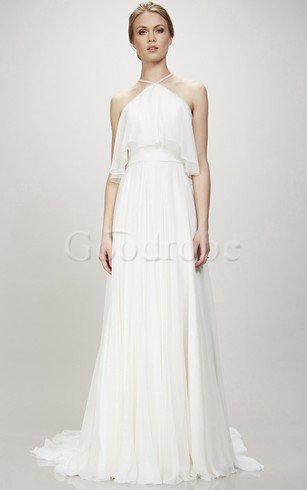 Robe de mariée ligne a de traîne moyenne dénudé avec chiffon en plein air