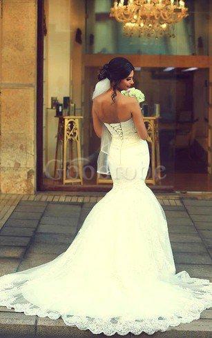 Robe de mariée manche nulle de traîne courte de sirène bretelles spaghetti cordon