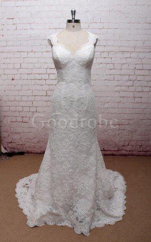 Robe de mariée festonné delicat de fourreau v encolure de sirène