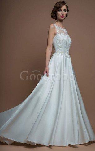Robe de mariée naturel manche nulle encolure ronde a ligne jusqu'au sol