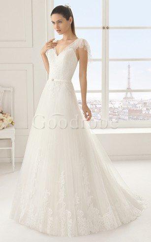 Robe de mariée majestueux longue sans dos jusqu'au sol avec manche courte