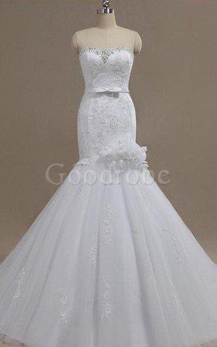 Robe de mariée de lotus bretelles spaghetti avec décoration dentelle cordon de sirène