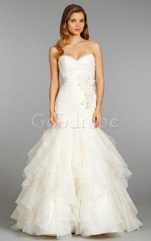 Robe de mariée de sirène de traîne courte en organza avec nœud à boucles avec ruban