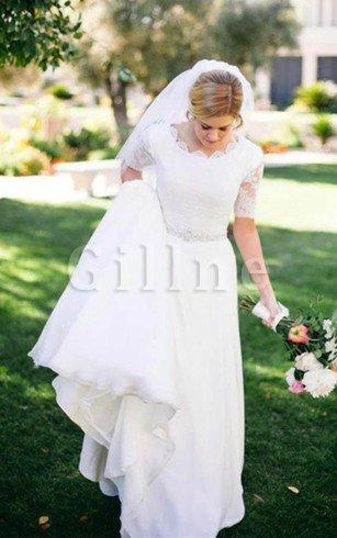 Abito da Sposa con Mezze Maniche Bordo Ondulato Moda Semplice Cerniera