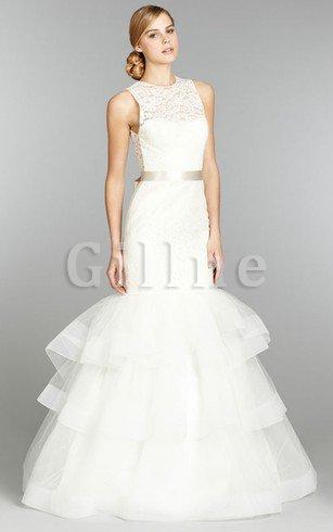 Abito da Sposa Spazzola Treno con Fusciacca in Tulle Senza Maniche con Seghettato